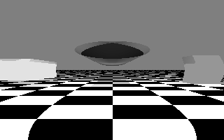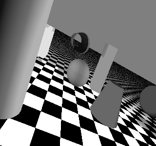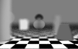 camera {location<-5,0,0> Die Unschärfe ist fast nur an den Kachelübergängen zu sehen. Die Kugel ist scharf. Blickrichtung wie bei Abb.2. |