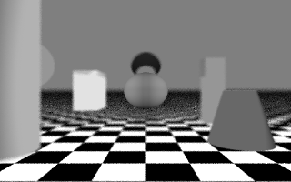 camera {location<-5,0,0> Auch bei den hinteren Objekten ist Unschärfe zu erkennen. |