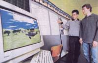 Bei der Beschäftigung mit Animationen kam bei Martin und Manuel bald der Wunsch auf, die Arbeit rationeller zu erledigen. So entstand die Idee einer Wettbewerbsarbeit für "Jugend forscht". Begonnen wurde das Projekt unabhängig von der Schule im darauffolgenden Schuljahr. Das Team bestand aus Martin Trautmann (Spezialgebiet C++-Programmierung), Manuel Moser (Spezialgebiet Raytracing mit POV-Ray) und Jan Theofel, damals bereits Abiturient (Spezialgebiet Netzwerktechnik). |