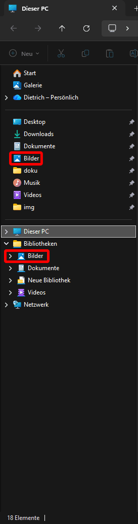 - Favoriten anheften: Rechtsklick auf eine beliebige Datei -> Zu Favoriten hinzufügen Bibliotheken