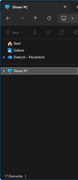Viel entscheidender ist aber, was ein (einziger) Ordner Bilder (oder Dokumente, Videos, Musik usw.) überhaupt soll; "Images" kann/darf man schließlich (fast) überall speichern, nicht nur im einen Ordner Bilder. Und auch der Begriff "Schnellzugriff" ist mehrdeutig: Schnellzugriff auf Programme und Daten oder Schnellzugriff auf Systemeinstellungen und Anpassungen. Die "Anzeigevielfalt" (l.a.) gibt es mindestens seit W7 und seit damals habe ich mich dieser Technik verweigert, u.a., weil mich drei "verschiedene" Desktops verschreckt hatten. Mir hatte lange Zeit die Arbeit mit Startmenü und Taskleiste vollkommen genügt, so dass mir eine Minimalkonfiguration (s.r.) vollauf ausreichte. Und für meine Dateiverwaltung verwende ich i.d.R. das Fremdprodukt SpeedCommander. Aber der Explorer ist ein sehr mächtiges Werkzeug, das ich mittlerweile für Sonderarbeiten vermehrt einsetzte. Explorer-Grundeinstellung Es gibt also viel zu erörtern und zu systematisieren. Doch vorab soll der Navigationsbereich im Explorer übersichtlich konfiguriert werden.