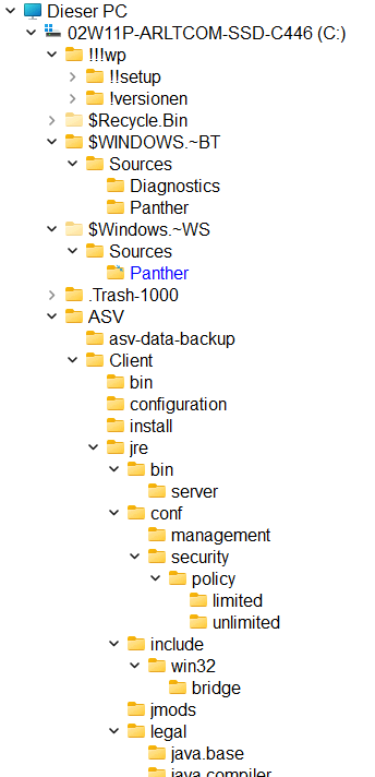 Das Startlaufwerk C: beinhaltet zunächst nur lauter Systemordner (Ordnerstruktur s.l.). Dort gibt es neben den zugänglichen Ordnern