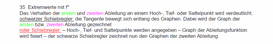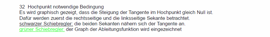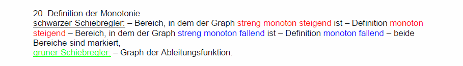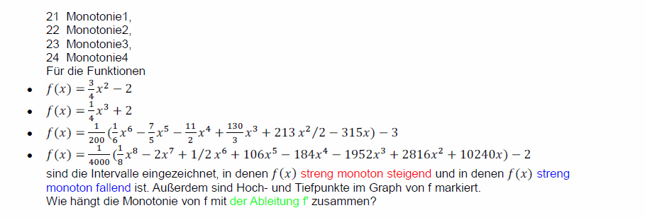 Dynamische Analysis / Einführung in die DifferentialrechnungIn den folgenden Arbeitsblättern sind Schiebregler und Schiebschalter vorhanden. Schiebregler verändern ein Bild stetig, Schiebschalter blenden (ggf. mehrstufig) zusätzliche Darstellungen ein. Die Arbeitsblätter lassen sich leichter bedienen, wenn die Mauszeigergeschwindigkeit nicht zu hoch eingestellt ist. Es dauert nur wenige Sekunden, bis die Javascript-App samt der Arbeitsblätter geladen ist. ![]() ![]() ![]() ![]() ⋄ ![]() ![]() ![]() ![]() Monotonie 1 Monotonie 2 ![]() Monotonie 3 ![]() Monotonie 4 ⋄ ![]() ![]() ![]() ![]() ![]() ![]() ![]() ![]() ⋄ ![]() ![]() ![]() ![]() ![]() ![]() ![]() ⋄ ![]()