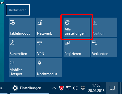 In Abschnitt Es hängt offensichtlich vom Fortschritt der MS-Programmierteams bezüglich der Migration von W7/W8 nach W10 ab, wo welche Einstellung zu finden ist. Was derzeit bleibt, ist ggf. die lästige Suche nach speziellen Einstellungsmöglichkeiten, die man dringend braucht, aber deren Namen man nicht genau kennt (dann führt u.U. auch die Windows-Suche nicht weiter). • Aufruf des Menüs (alle) EinstellungenWaren die Einstellungen in W8 noch recht gut versteckt, sind sie in W10 über mehrere Wege aufrufbar: