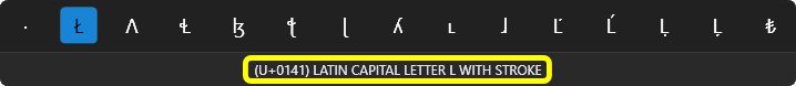 Dann erst wird die gedrückte Buchstabentaste losgelassen, wodurch der gefundene Buchstabe von der Sonderzeichenleiste übernommen wird und die Leiste verschwindet. Im Bild sind einige Diakritika auf diese Weise bereits erfasst, bis auf das L mit Schrägstrich, das im Bsp markiert ist. Da für Großbuchstaben jeweils zwei Tasten zu drücken sind, bräuchte man eigentlich drei Finger. Daher ist es bei Großbuchstaben einfacher, mittels Feststelltaste die Shift-Taste vorübergehend zu arretieren, dann können Großbuchstaben wie die Kleinbuchstaben auch mit zwei Fingern bedient werden. Im modernen Fotosatz gibt es eigentlich auch keine kombinierten Buchstaben, schließlich landen auf dem Druckmedium auch nur Letterabdrücke. Da aber die ggf. "vielen" Sonderbuchstaben über normale Tastaturen eingegeben werden müssen, geht das rationell nur über mehrfache Tastenbelegung mit Tot-Tasten und Spezialsoftware. Außerdem ist es letztendlich egal, ob auf Folie, Papier oder Monitore "gedruckt" wird; immer setzt die Software die "Lettern" (irgendwie) zusammen.