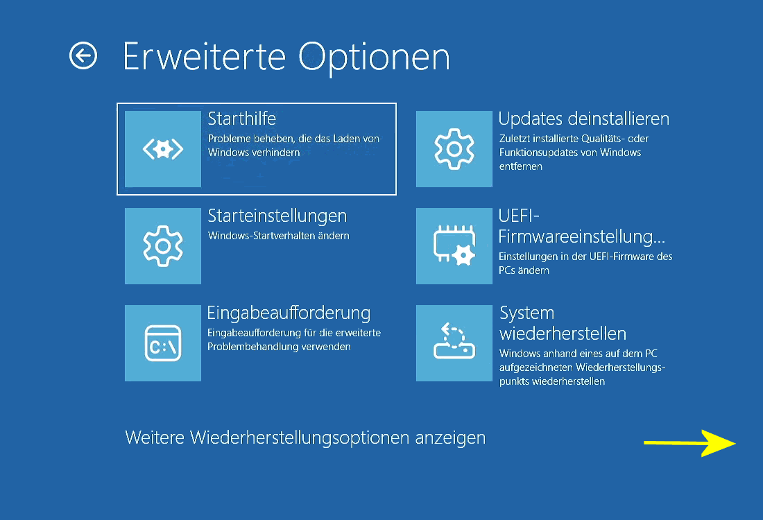 Tipps aus dem Netz Zur Reparatur gehören neben div. internen und externen Reparatur-Tools auch Neuinstallationen und Reparaturinstallationen mit Datenerhalt. Und hierzu gehören auch Tipps und Tricks zum Wechsel von W10 zu W11, auch für "ungeeignete" PCs. ![]() Windows 11 startet nicht - Windows reparieren - schwarzer Bildschirm - Automatische Reparatur Windows 10 startet nicht - BOOTMGR fehlt - Bootcode Bootsektor reparieren Update Windows 10 auf 11 auf JEDEM PC - funktioniert August 2025 - in 30 Minuten ![]() Anleitung: Windows reparieren ohne Datenverlust *** Windows11 neu installieren ohne Datenverlust *** Windows 11 neu installieren: Die besten Tricks, die ihr kennen müsst 1-Klick-Upgrade: Windows 10 auf 11 Upgrade für inkompatible Geräte ![]() SFC + DISM: So reparierst du Windows ohne Datenverlust – funktioniert wirklich! *** Patchday Juli 2025: Diese Windows-Updates MUSST du jetzt installieren! *** Copilot, Recall & Bugfixes: Was die neuen Windows-Updates wirklich bringen! Windows 10/11: Diese versteckten Funktionen könnten deinen PC retten! 100+ Windows-Tweaks für ein sauberes System PC kann nicht zurückgesetzt werden und eine erforderliche Laufwerkspartition fehlt Aufruf der Reparatur-Optionen Nachdem der Bootvorgang dreimal hintereinander abgebrochen wurde, wird die automatische Reparatur eingeleitet. Wenn dabei nach der Diagnose des Systems der Reparaturversuch misslingt, wird der Aufruf der Erweiterten Optionen angeboten (s.u.). Das zugehorige Fenster Optionen auswählen (s.r.u.) ist das zentrale Reparaturfenster. Diese Optionen können im Bootmenü auch unten händisch aufgerufen werden (s.l.u.). Und wenn der PC beim Starten kein Bootmenü zeigt, kommen Sie z.B. über shift + Neu starten direkt zum Fenster Optionen auswählen (s.r.u.).