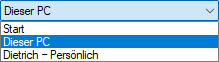 Die pink markierten Optionen (s.r.o.) werden in 9. Datenschutz abgehandelt. Unter W7 hieß Dieser PC noch Arbeitsplatz. Damals gab es die Verknüpfungslisten Biblitheken, die unter W10 aus Kompatibilitätsgründen noch bedienbar sind, aber eigentlich durch die Verknüpfungslisten Schnellzugriff abgelöst wurden. Daher kann man unter W10 zwischen der Darstellung Dieser PC und der Darstellung Schnellzugriff wählen. Das sind aber nur Einstiegspunkte zu den vier Gruppen Schnellzugriff, Onedrive, Dieser PC und Netzwerk im Navigationsbereich (s.r.). D.h. es werden immer alle vier Bereiche angezeigt, aufgeklappt oder nicht, aber immer durch rauf- und runtrscrollen erreichbar.