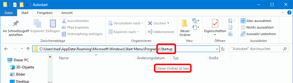Im Bild ist zu erkennen, dass Autostart in Wirklichkeit Startup heißt.