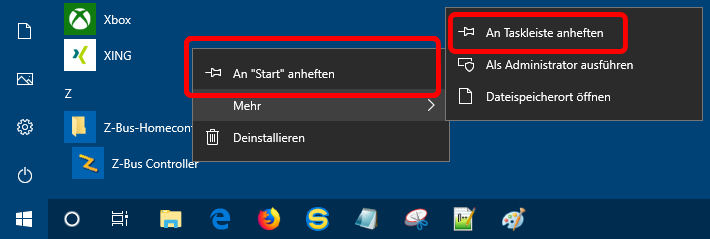 Ab sofort können Sie auch über das Startmenü den Z-Bus-Controller starten. Damit ist Punkt 3 berichtigt. c) Einrichten der Links auf Startseite/Taskleiste