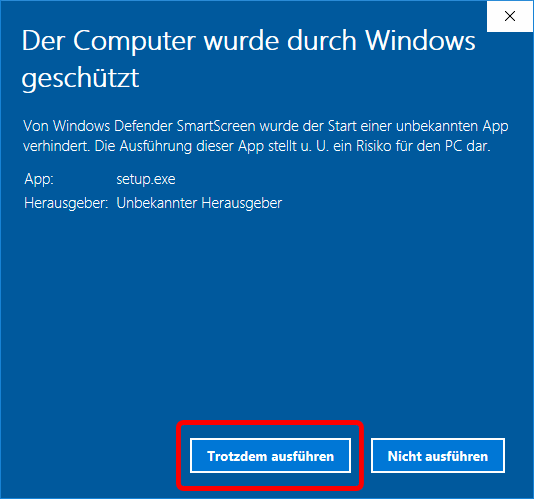 Wenn Sie setup.exe direkt von einer CD aus starten, unterbleiben die Warnhinweise.