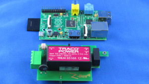 Im nebenstehenden Bild sind die beiden Platinen des Bus/Netzwerk-Interfaces getrennt abgebildet, hinten der Raspberry-Pi, vorne das eigentliche Z-Bus-Interface mit aufgesetzter Stromversorgung für Interface und Raspberry Pi.