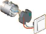 So wollten wir z.B. zwei Empfänger für zwei zweiteilige/doppelmotorige Rollladenpaare in eine Verteilerdose samt Durchschleifung zur Nachbardose einbauen. Also kammen in der Verteilerdose insgesamt 24 Leiter an, zwei Vierdraht-Netz-Stränge: 2 x (L + N + PE + Bus) und vier Vierdraht-Kabel der beiden Doppel-Rollläden: 4 x (Auf + Ab + N + PE). Wir hatten damals Mühe, das alles zu verdrahten und sauber in der Dose (quadratisch, 10 x 10 cm) unterzubringen Es wäre viel einfacher gewesen, mittels entsprechender fünfklemmiger Hebelklemmen Typ 221 die Durchschleifung am Dosenboden durchzuführen und dabei jeweils zwei Abzweigungen für L, N und Bus für die zwei Empfänger vorzusehen; die Empfänger hätten sich dann viel leichter in der Dose "versenken" lassen. Und die zehn Hebelklemmen zu den Motoren hätten sich leicht in den Zwischenräumen unterbringen lassen. Eine versehentliche Auf/Ab-Verwechslung wäre auch kein Problem gewesen: Klemmen auf, Litzen vertauschen, Klemmen zu, fertig. Verdrahtung von Rollladen-MotorenDie beiden Motoren eines Rollladenpaares dürfen nie parallel verdrahtet werden, selbst wenn sie immer parallel laufen sollen! Es sind vielmehr die Empfänger zur Ansteuerung zweier Motoren zu verwenden. Leider ist die Kodierung in den Rollladen-Kabeln (schwarz, brau, blau, gelbgrün) entsprechend (Auf, Ab, N, PE). Hier mussten wir also aufpassen, dass dieses braun nicht mit Bus verwechselt werden durfte, was sonst sofort das gesamte Bus-System blockiert hätte !!! Das gleiche Problem dürfte auch bei anderen Geräten mit richtungsabhängigen Steuerungen auftreten (Jalousien, Markisen, Sonnensegeln ...). Kleines Befehls-Einmaleins des Z-BusEs gibt unterschiedliche Arten der Steuerung von Verbrauchern und daher auch (historisch bedingt) unterschiedliche Arten der Befehlsbeschreibung. Zum Verständnis lohnt ein Blick auf klassische Schaltungen. Klassische Schaltungen